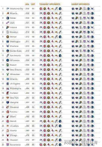 Tankathon的赛程难度统计采用业界公认的科学算法,核心逻辑是通过计算各队剩余对手的当前胜率平均值进行排行。简单来说,若一支球队此前已与多支高胜率强队交手,剩余赛程中遭遇的强敌数量自然减少,难度系数就会降低。