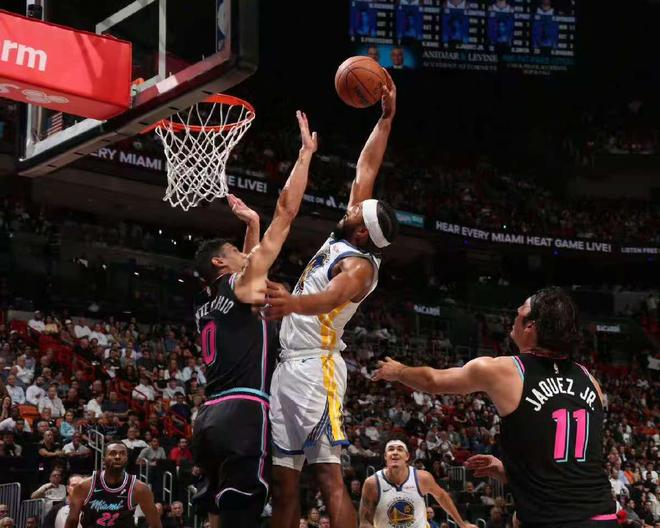 本场面对老东家,维金斯是丝毫没有客气,上来就打的非常主动,不断冲击篮下取分,外线3分也有保障,尤其是防守端,他出色的机动性,很大的限制了勇士队的进攻,早早为热火确立优势!
